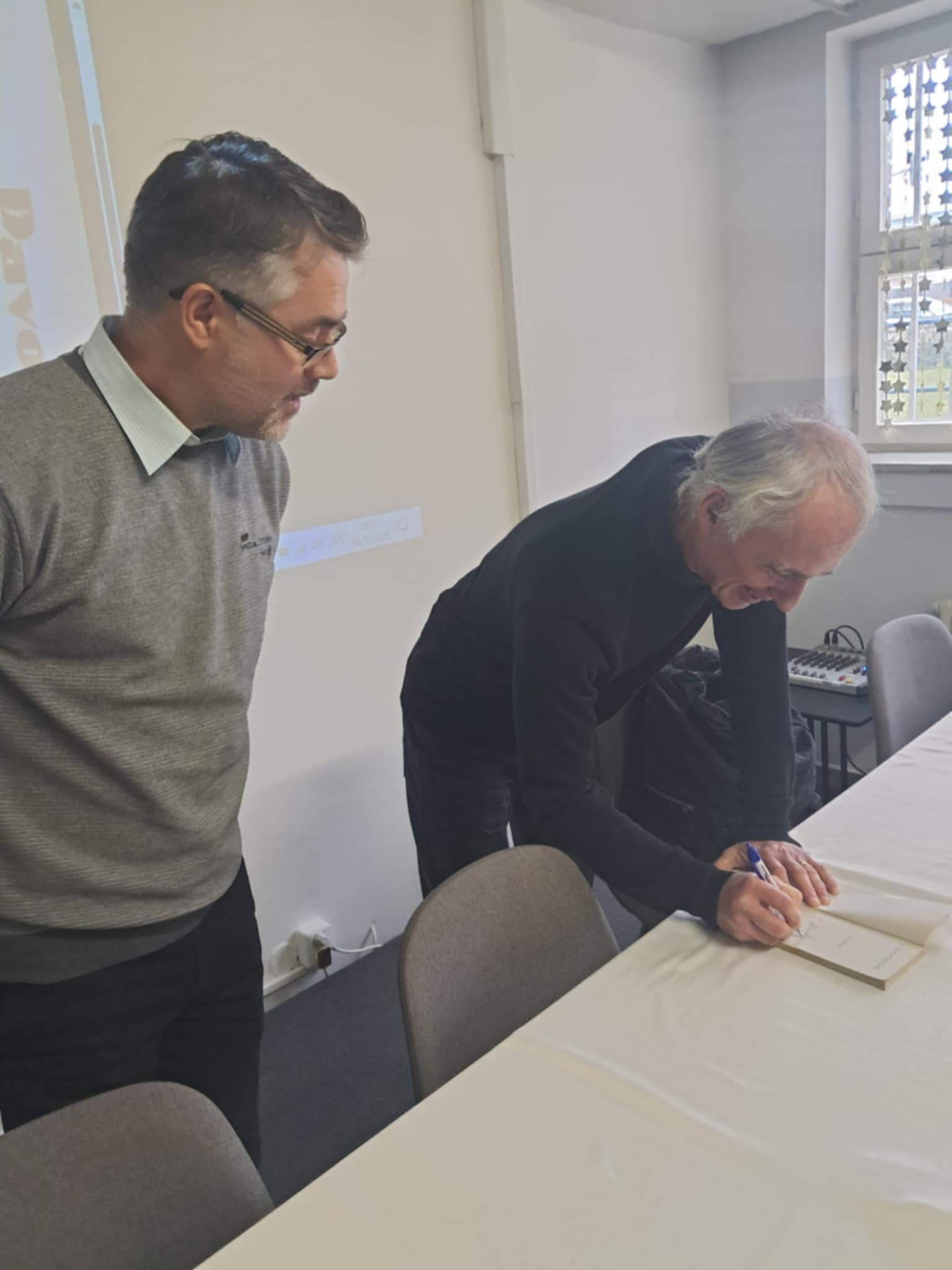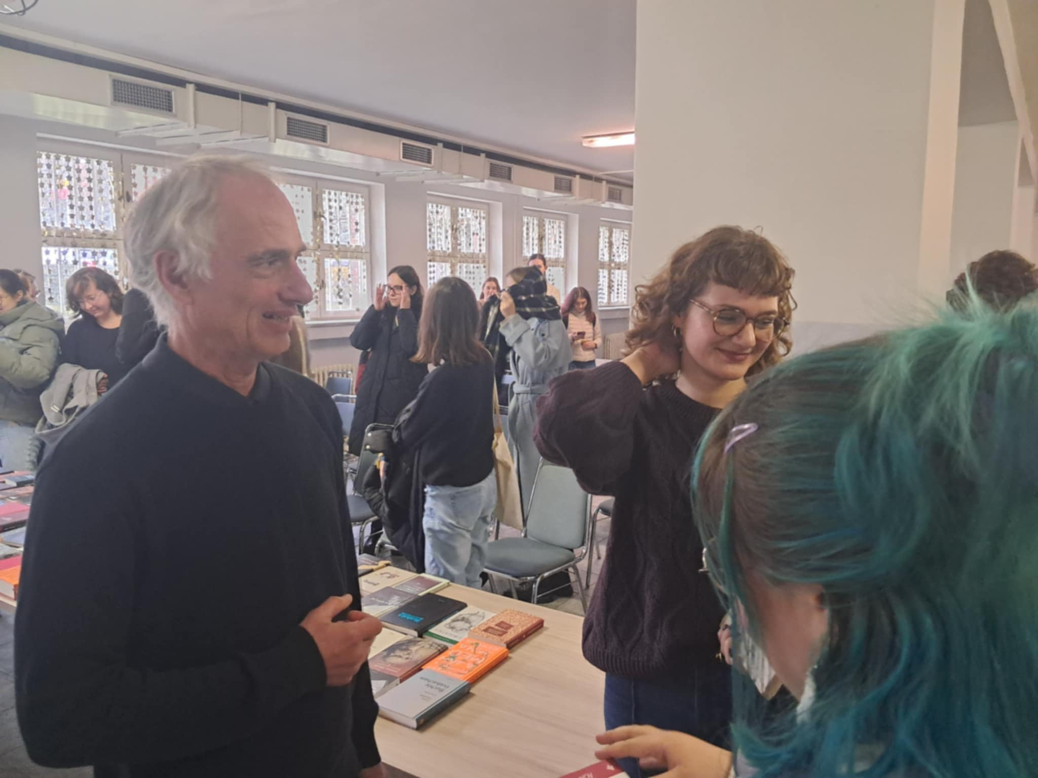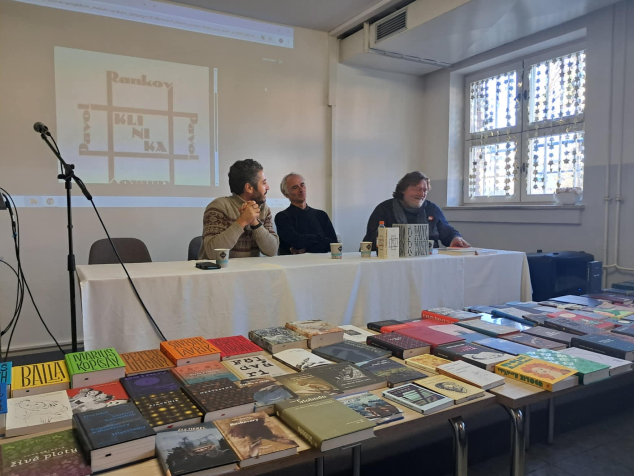 Podujatie, ktorým Klub editorov zavŕšil svoje aktivity roku 2025, bola beseda s vydavateľom KK Bagalom a spisovateľom Pavlom Rankovom. Stretnutie sa uskutočnilo 19. novembra v spoločenskej miestnosti FF UKF a opäť raz prebiehalo v príjemnej atmosfére, ktorú svojím charizmatickým vystupovaním dvojica vzácnych pozvaných hostí okolo seba vytvorila. Nechýbala odbornosť, vecná debata, ani štipka humoru. Koloman Kertész Bagala porozprával o svojich vydavateľských začiatkoch, o spolupráci s mnohými talentovanými autormi a o spoločenskej situácii, ktorá zásadne ovplyvňuje náš kultúrny a životný priestor. Katedru slovanských filológií navyše obdaroval stovkou kníh od významných spisovateľov súčasnej slovenskej literatúry, medzi ktorých nepochybne patrí aj Pavol Rankov. Ako oceňovaný spisovateľ rozdával Pavol Rankov nie len autogramy, ale aj podnetné či humorné reflexie z oblasti svojho spisovateľského pôsobenia. Zaujímavá bola samotná interakcia medzi týmito dlhoročnými priateľmi, vďaka ktorej mali študenti príležitosť spozorovať, že vzťah medzi autorom a vydavateľom rozhodne nemusí zotrvávať výlučne na formálnej úrovni. Za hodnotný knižný dar a podnetnú besedu sme v Klube editorov nesmierne vďační.