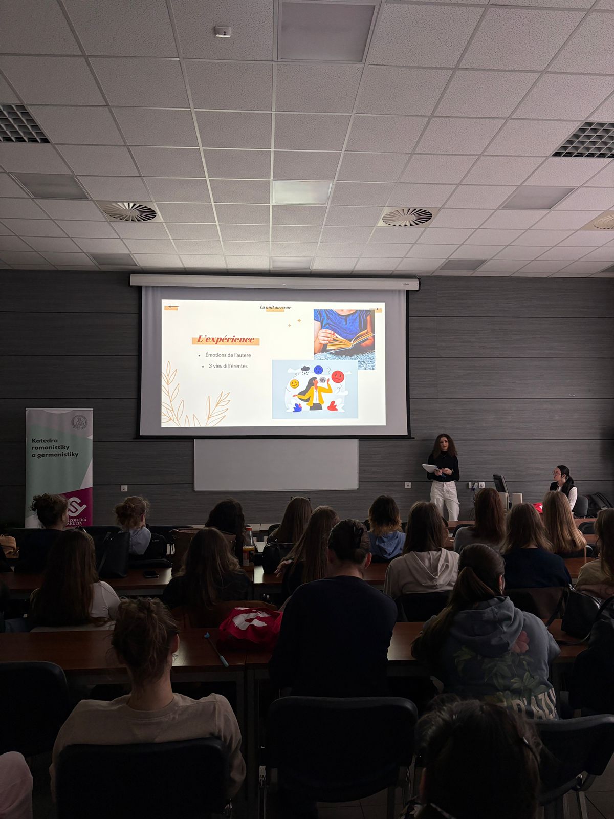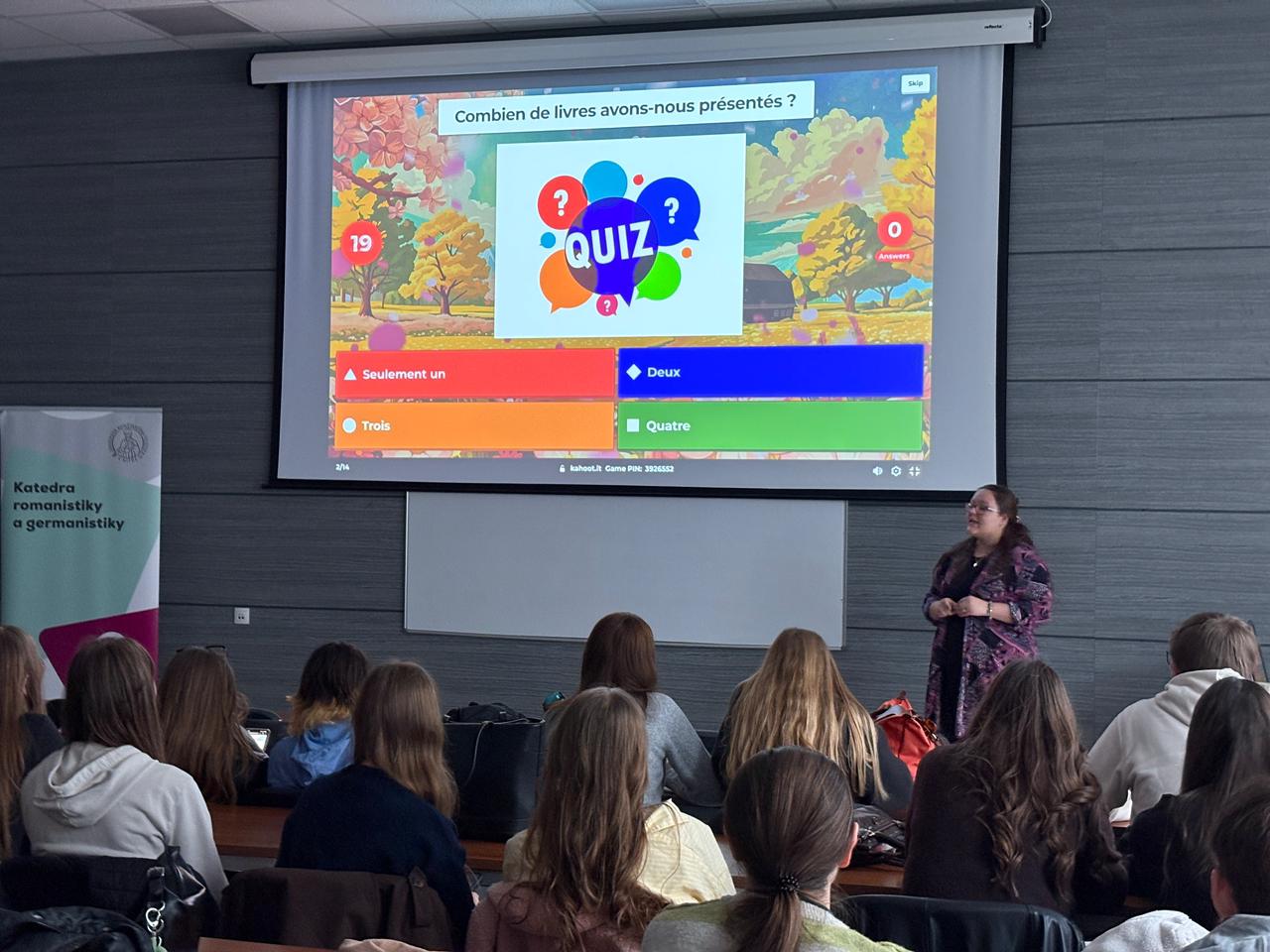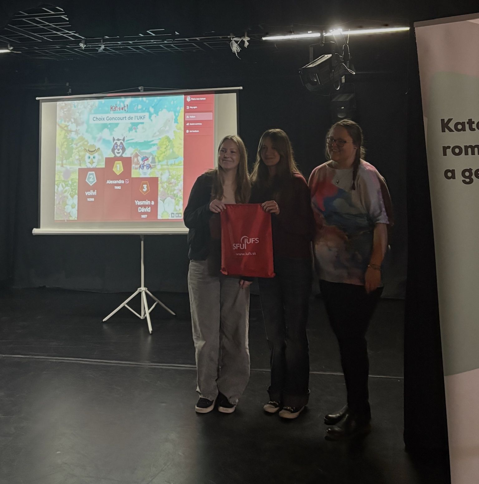 Program pokračoval aktivitou Choix Goncourt de Slovaquie à l’UKF, počas ktorej študentky predstavili súčasné frankofónne romány nominované na prestížnu literárnu cenu. Stredoškoláci mali možnosť oboznámiť sa s aktuálnymi témami rezonujúcimi vo frankofónnom svete, ako sú medziľudské vzťahy, identita, trauma či otázky násilia. Súčasťou aktivity bolo aj anonymné hlasovanie o najzaujímavejšej knihe a interaktívny Kahoot! kvíz, ktorý preveril vedomosti i pohotovosť účastníkov.