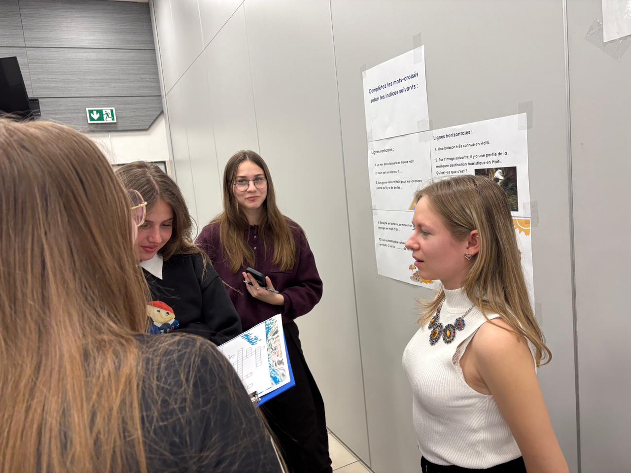 Po krátkej prestávke nasledovala práca v skupinách, rozdelená do dvoch paralelných aktivít. Hra J’aime la Francophonie ponúkla súťažný formát s otázkami z geografie, histórie a kultúry frankofónnych krajín, doplnený o pantomímu a hudobný kvíz. Druhou aktivitou bol Frankofónny tvorivý ateliér, kde študenti pracovali s vizuálnym dielom frankofónneho umelca – skladali ho ako puzzle, tvorili k nemu príbeh vo francúzštine a výsledok prezentovali ako komplexné dielo.
