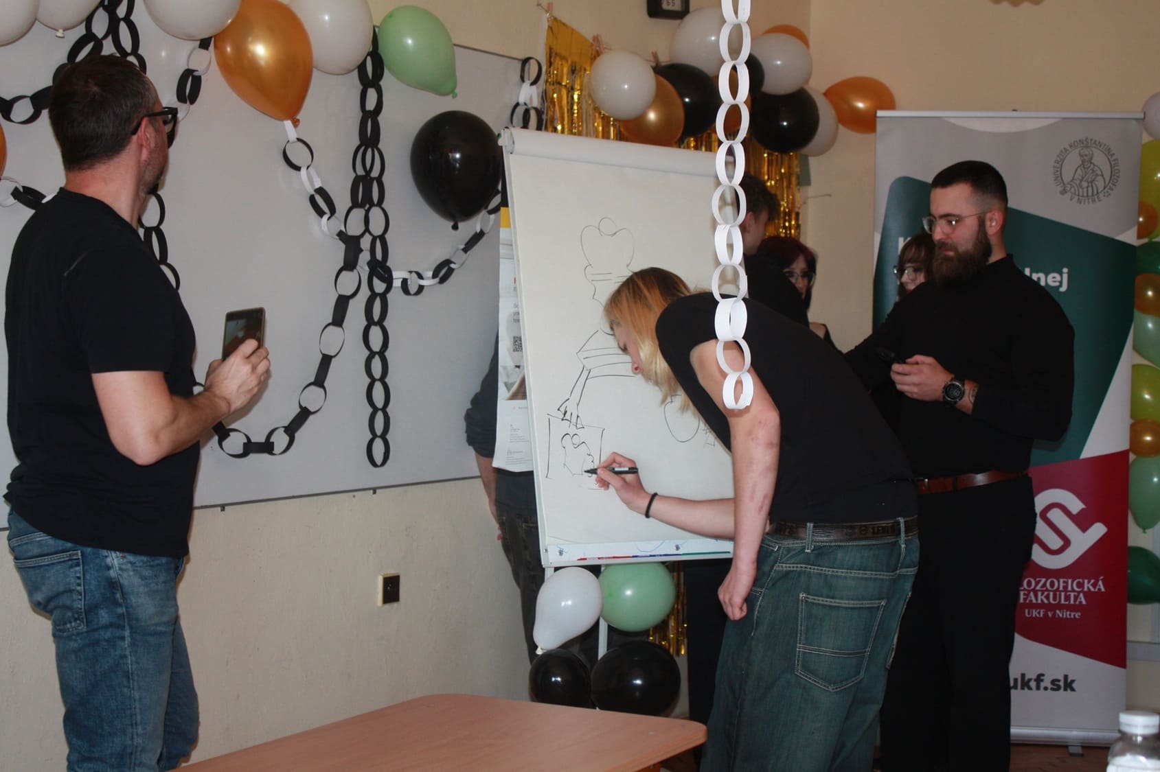 Pre stredoškolákov Súkromnej strednej školy umeleckého priemyslu v Nitre pripravili študenti UKF v Nitre zaujímavé edukačné podujatie, s ktorým 27. apríla 2026 navštívili priamo priestory ich školy na Samovej 14. Interaktívny workshop s názvom Reťazec praudy vznikol ako ročníkový projekt, na ktorom študenti Katedry masmediálnej komunikácie a reklamy Filozofickej fakulty UKF pracovali celý letný semester. Projekt sa venuje problematike šírenia dezinformácií a hoaxov v médiách – názorne a veľmi prístupnou formou sa v ňom prepájajú teoretické poznatky s praxou, čím reaguje na aktuálne spoločenské výzvy.