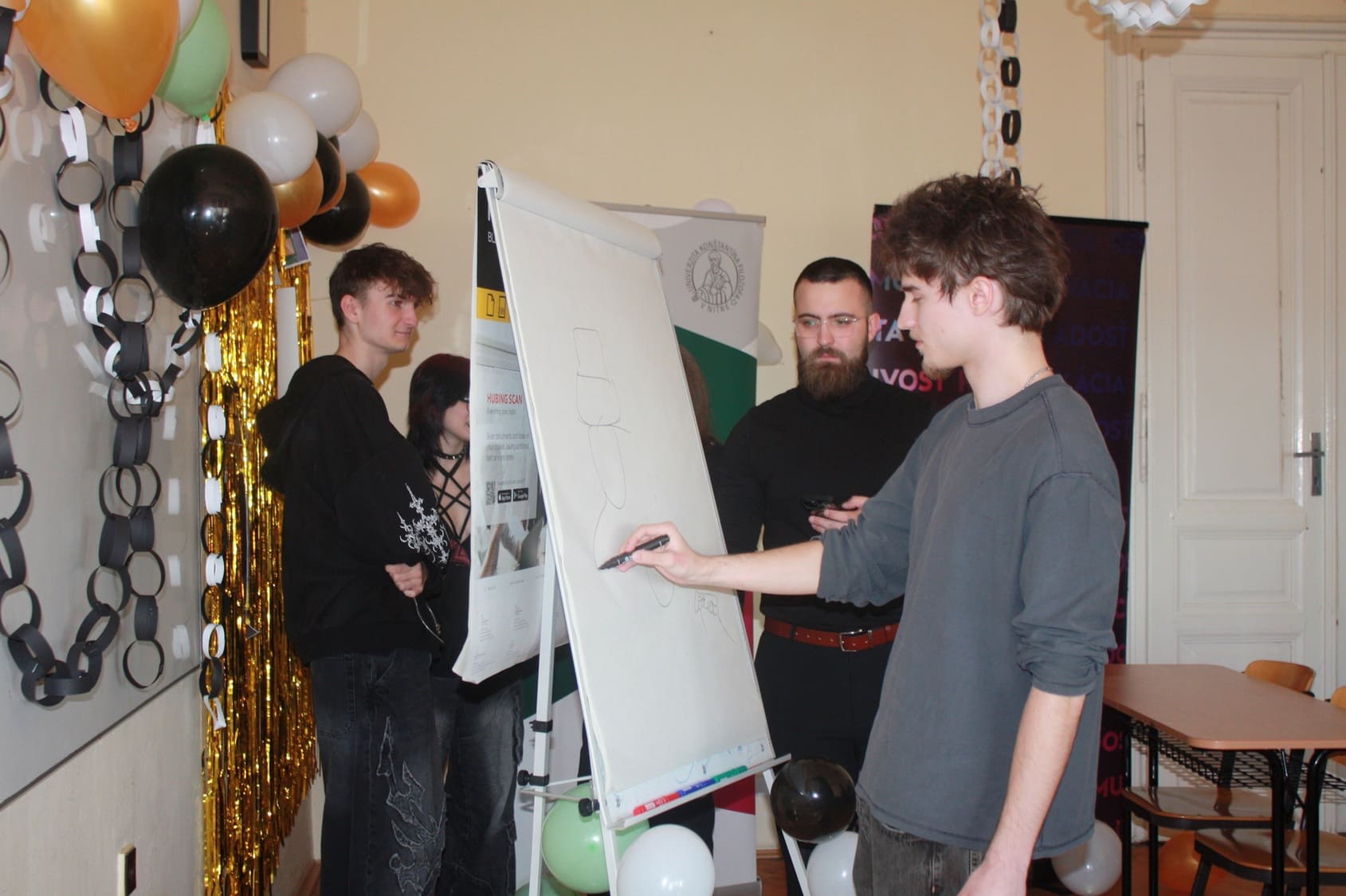 „Vybrať si študentov Súkromnej strednej školy umeleckého priemyslu ako cieľovú skupinu projektu nám poradil Mgr. Jozef Peniak, PhD., pedagóg našej katedry, ktorý zároveň vyučuje aj na tejto strednej škole. Vybavil nám priestory a tiež nám projekt na tejto škole organizačne zastrešil. Bola to pre nás jednoznačná voľba, keďže aj interaktívna aktivita podujatia je spojená s umeleckou činnosťou a kreatívnou tvorbou,“ doplnila Kristína Kovačiková.