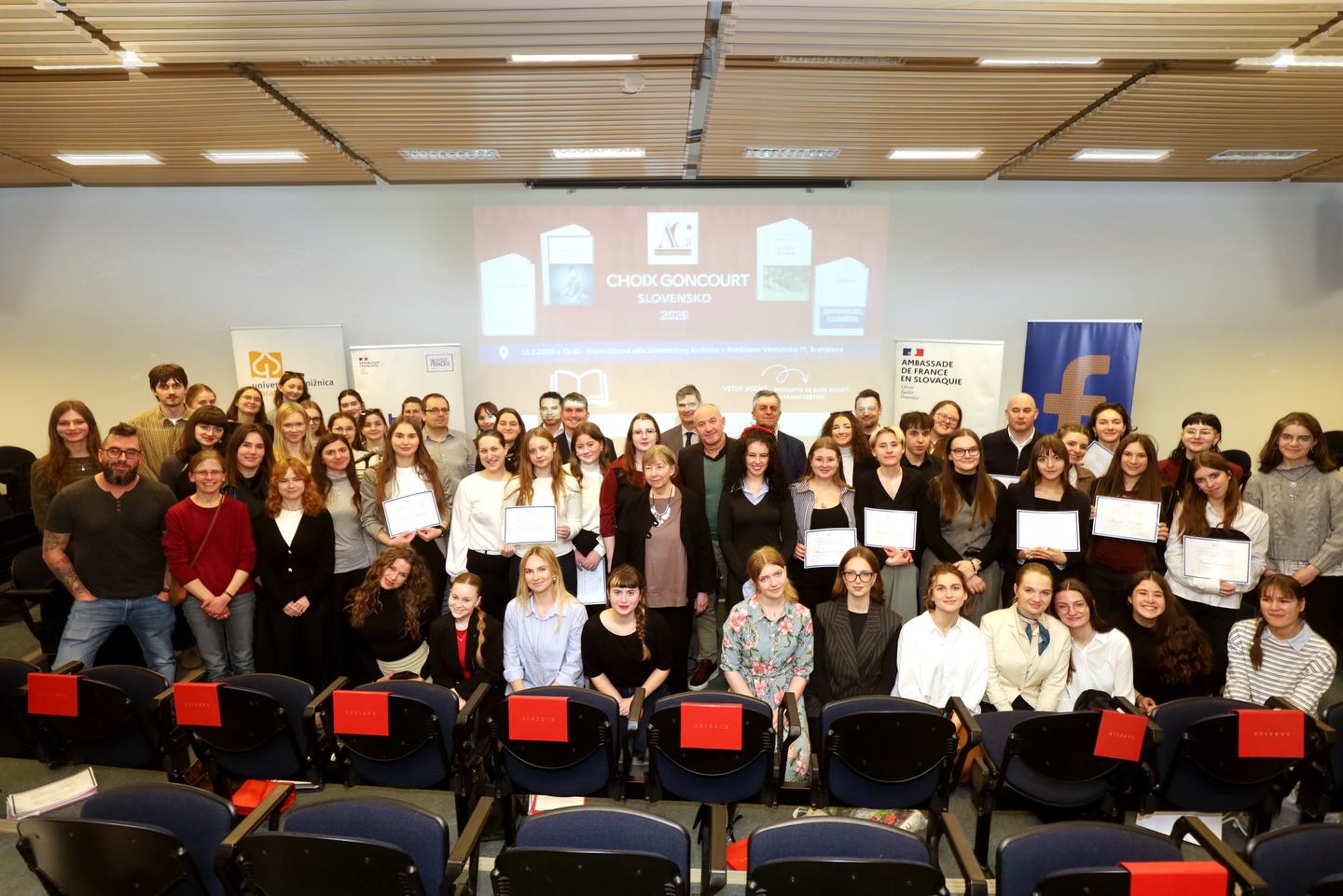 Marec je medzinárodným mesiacom Frankofónie, ako aj mesiacom knihy. Tretí ročník regionálnej prestížnej literárnej ceny Choix Goncourt de Slovaquie, organizovanej Francúzskym inštitútom na Slovensku, bol výnimočný nielen novými frankofónnymi literárnymi dielami, ale aj počtom zapojených študentiek a študentov zo štyroch univerzít a tento rok aj z piatich stredných škôl. Našu univerzitu reprezentovali štyri študentky Katedry romanistiky a germanistiky FF UKF v Nitre, menovite Silvia Hoosová, Patrícia Ohrablová, Viktória Stredanská a Nela Typltová.