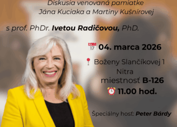 Katedra žurnalistiky a nových médií v spolupráci s Katedrou filozofie a politológie FF UKF v Nitre pozývajú na diskusiu s Ivetou Radičovou (sociologičkou, dekankou Fakulty masmédií Paneurópskej vysokej školy v Bratislave a predsedníčkou vlády SR v rokoch 2010 – 2012) a Petrom Bárdym (novinárom a šéfredaktorom spravodajského webu Aktuality.sk), ktorá sa uskutoční 4. marca 2026 (v stredu) o 11.00 hod. na B. Slančíkovej 1 v Nitre (ŠD UKF Nitra, miestnosť B-126). Diskusia je venovaná pamiatke Jána Kuciaka a Martiny Kušnírovej.