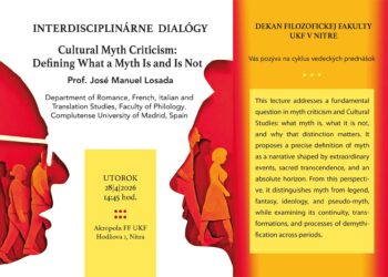 Srdečne Vás pozývame na ďalšie podujatie v rámci prednáškového cyklu Interdisciplinárne dialógy. Dňa 28. apríla 2026 sa predstaví prof. José Manuel Losada z Complutense University of Madrid (Španielsko) s prednáškou: Cultural Myth Criticism: Defining What a Myth Is and Is Not.